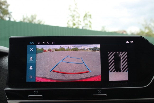 Ліворуч від керма сховалися клавіші включення підігріву керма та лобового скла, а поруч панелька для налаштування проекційного дисплея, який виїжджає перед водієм. Так, тут встановлено проекцію, яку можна примусово вимкнути. Це досить зручно, коли автомобіль транслює тобі дані швидкості, знаки обмеження та повідомлення від системи навігації штатної.